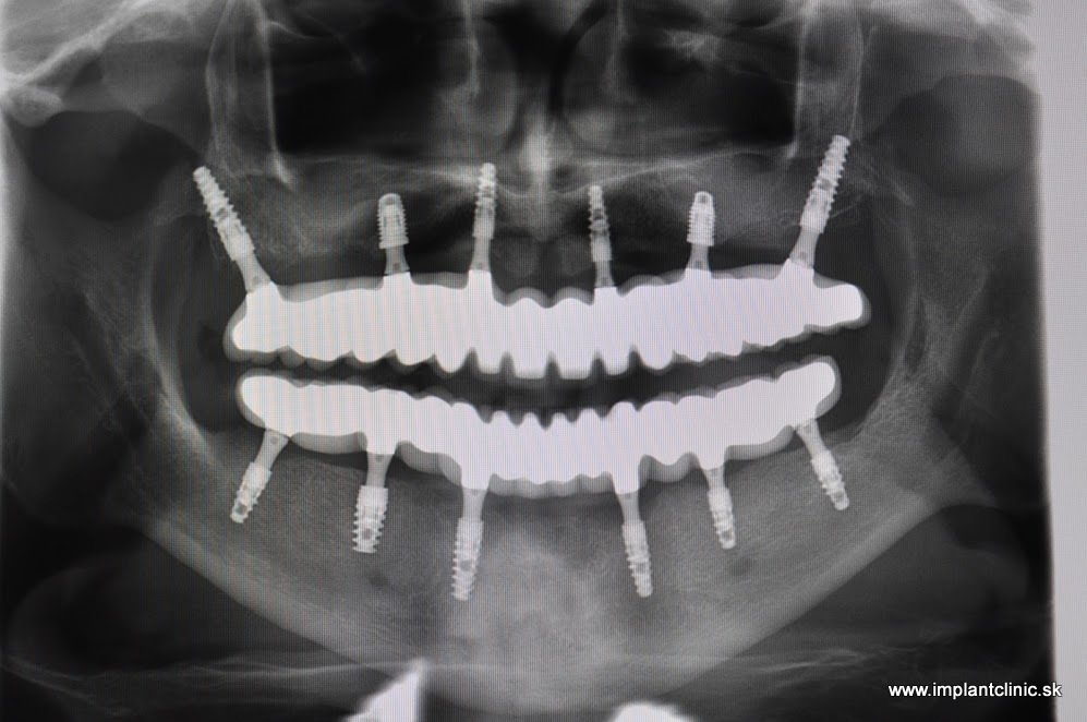 Po zavedení zubných implantátov sa pacientovi nasadili dočasné titánom vystužené zubné mostíky. Takže pacient odchádza domov po ošetrení so zubami. Dôležitou súčasťou hojenia zubných implantátov je konzumovanie mäkkej stravy po dobu 2-3 mesiacov.