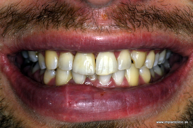 Pozrite sa na fotografie pacienta, ktorý sa po strate zuba č. 21 rozhodol pre jeho náhradu zubným implantátom.